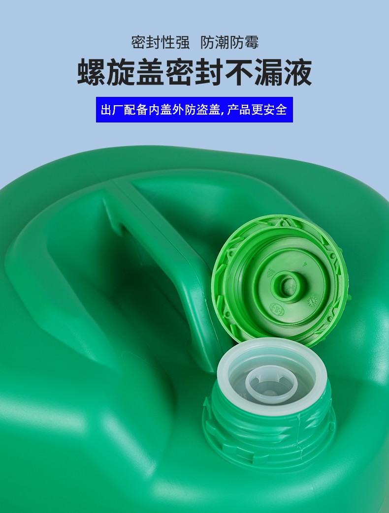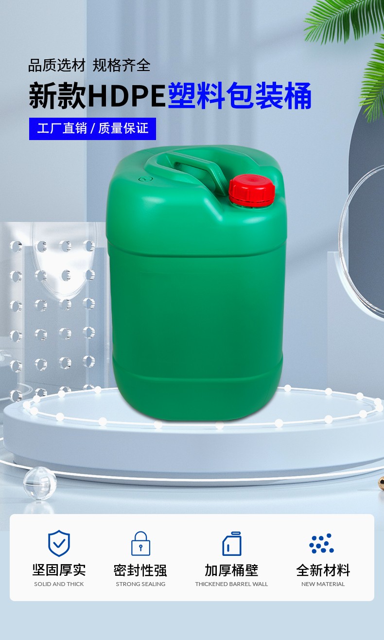 采用全新聚乙烯原料吹塑工藝制作而成,具有耐腐蝕,耐酸堿性,小口設計密封性能強,廣泛應用于化工清潔劑,表面處理劑、輔料添加劑、飼料添加劑, 樹脂農(nóng)藥,日用化學品,聚氨酯、膠黏劑 消泡劑 電解液等各行業(yè)液體包裝。