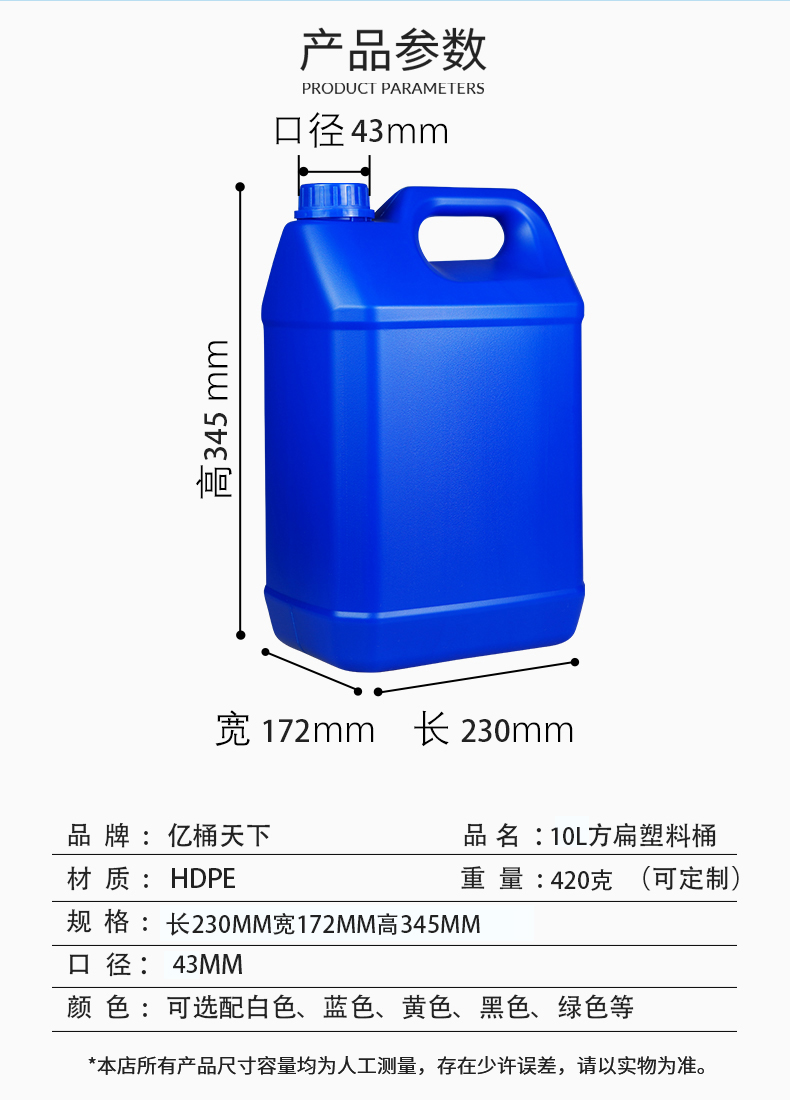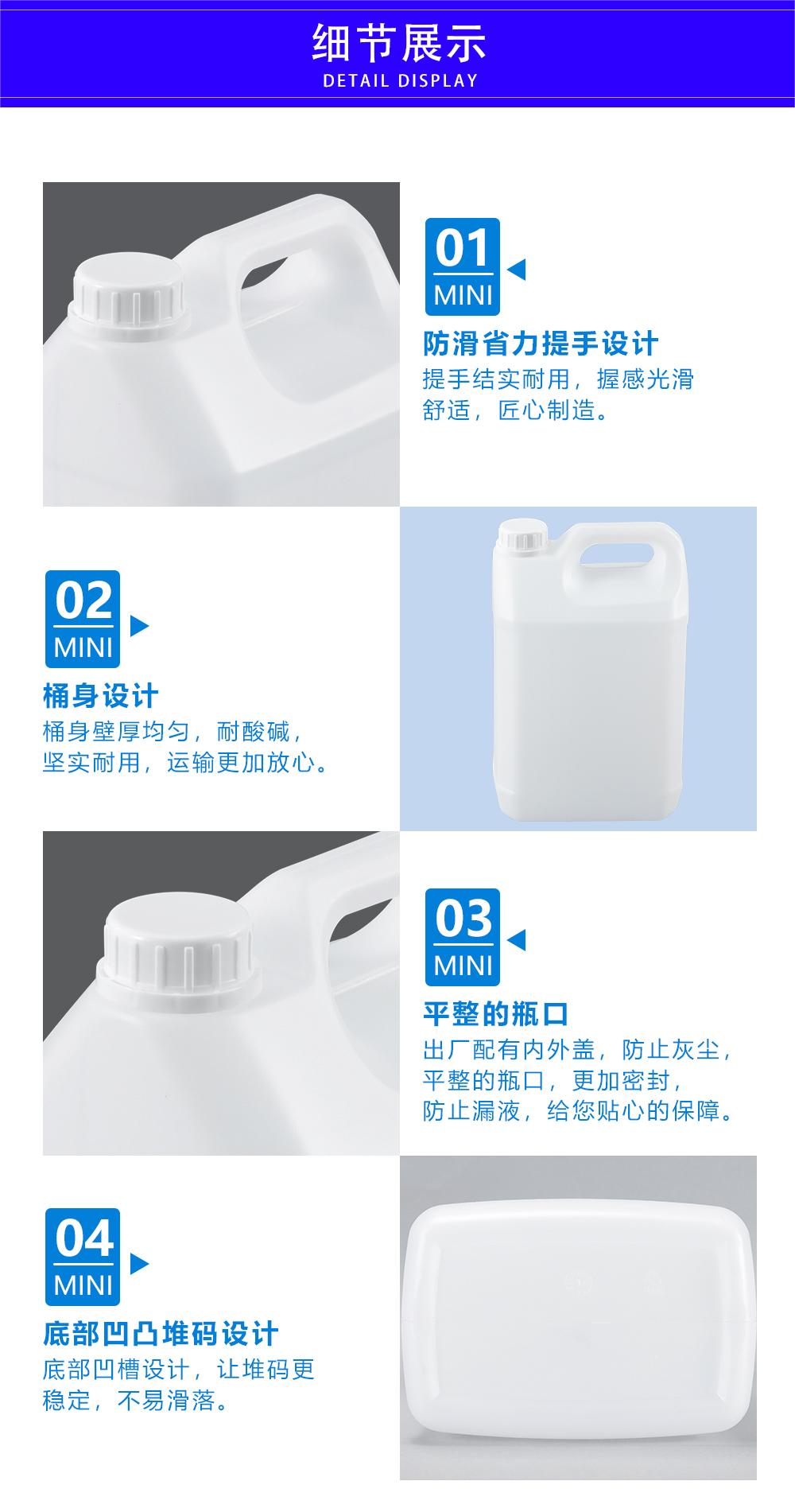 采用全新聚乙烯原料吹塑工藝制作而成,具有耐腐蝕,耐酸堿性,小口設(shè)計(jì)密封性能強(qiáng),廣泛應(yīng)用于化工清潔劑,表面處理劑、輔料添加劑、飼料添加劑, 樹(shù)脂農(nóng)藥,日用化學(xué)品,聚氨酯、膠黏劑 消泡劑 電解液等各行業(yè)液體包裝。
