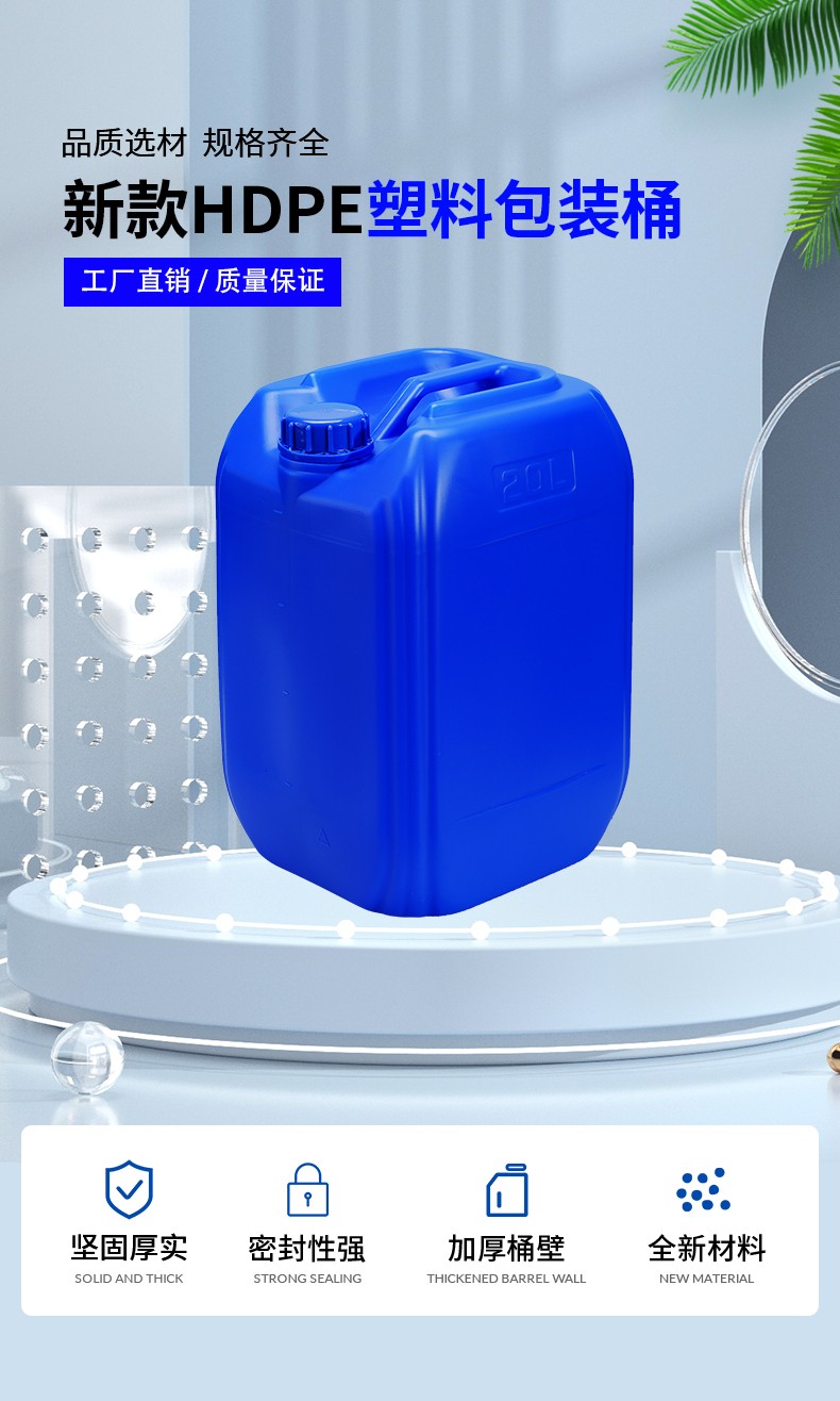 采用全新聚乙烯原料吹塑工藝制作而成,具有耐腐蝕,耐酸堿性,小口設計密封性能強,廣泛應用于化工清潔劑,表面處理劑、輔料添加劑、飼料添加劑, 樹脂農(nóng)藥,日用化學品,聚氨酯、膠黏劑 消泡劑 電解液等各行業(yè)液體包裝。