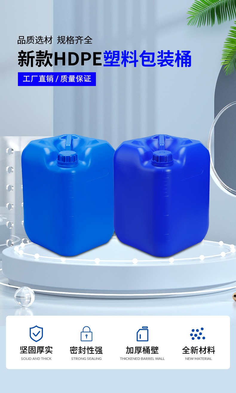 采用全新聚乙烯原料吹塑工藝制作而成,具有耐腐蝕,耐酸堿性,小口設計密封性能強,廣泛應用于化工清潔劑,表面處理劑、輔料添加劑、飼料添加劑, 樹脂農(nóng)藥,日用化學品,聚氨酯、膠黏劑 消泡劑 電解液等各行業(yè)液體包裝。