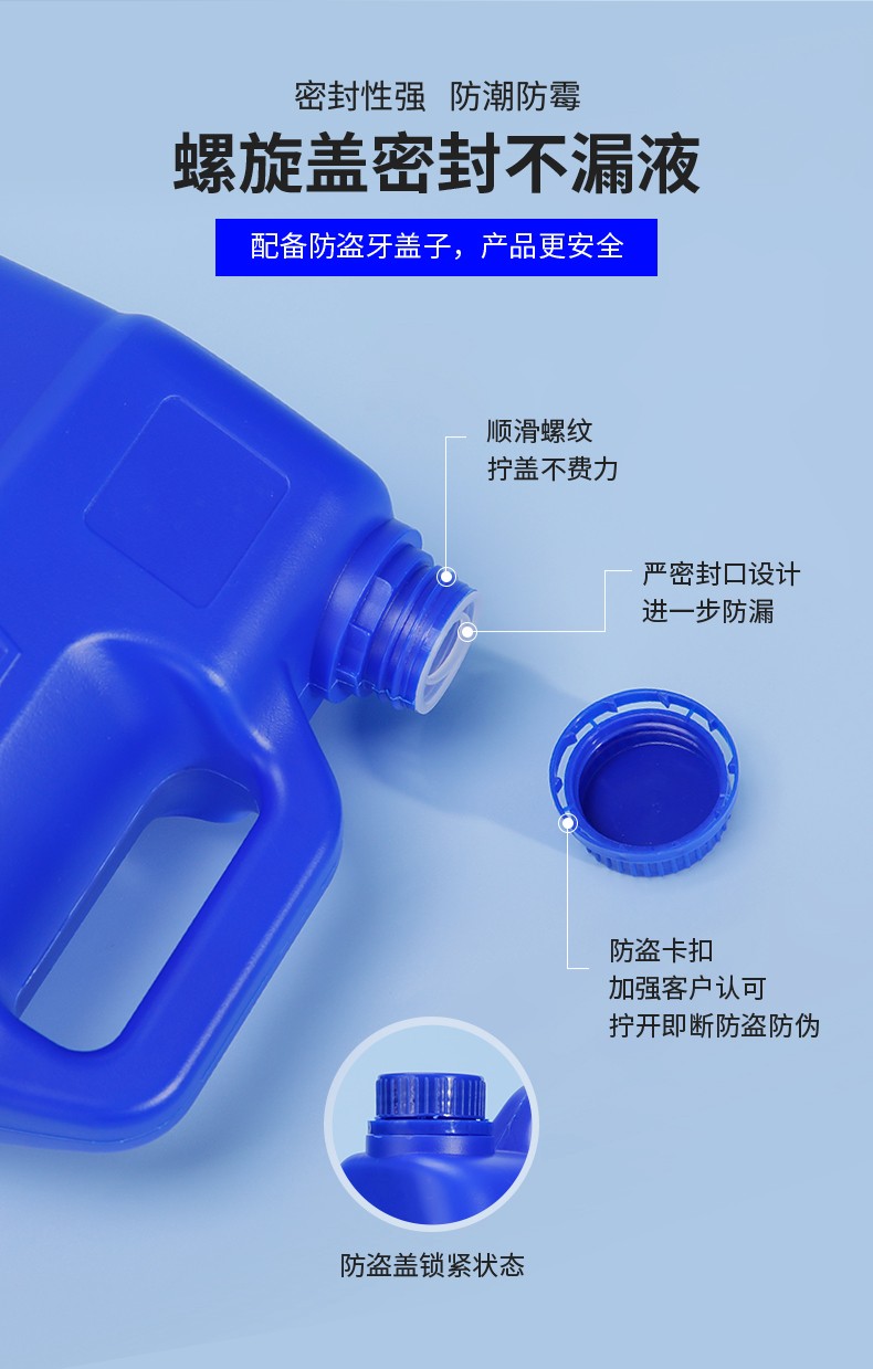 采用全新聚乙烯原料吹塑工藝制作而成,具有耐腐蝕,耐酸堿性,小口設(shè)計(jì)密封性能強(qiáng),廣泛應(yīng)用于化工清潔劑,表面處理劑、輔料添加劑、飼料添加劑, 樹(shù)脂農(nóng)藥,日用化學(xué)品,聚氨酯、膠黏劑 消泡劑 電解液等各行業(yè)液體包裝。